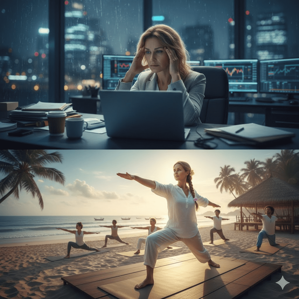 But when these experts reach their limit, many times they come to see that something has to be different. Some felt the answer was rethinking their whole approach to life, not only taking a break. For many, that meant seeking Yoga for Corporate Burnout Goa, a place renowned for its healing energy, energetic yoga community, and serene beaches.